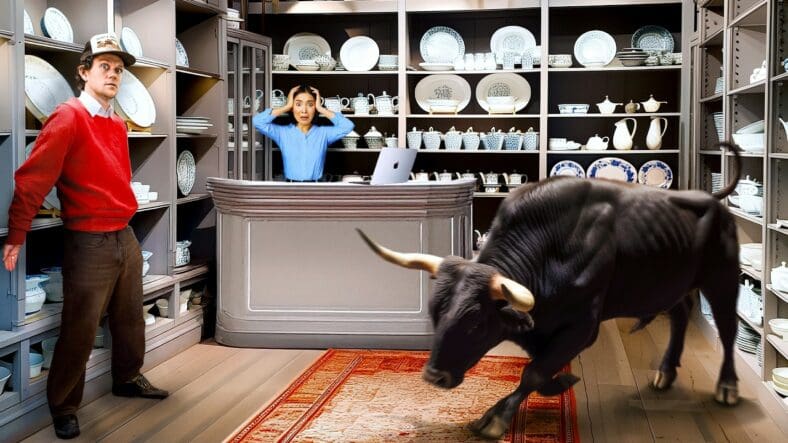 The bull’s entry into the “China Shop” was nothing short of spectacular. The careful choreography between the animal and the environment created a mesmerizing scene that blended tradition with innovation. Zac’s reaction to witnessing this spectacle was priceless. And we’re sure it’s a moment that will resonate with his audience for years to come.